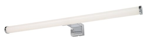 Postavljena iznad lavaboa i blizu ogledala, Nour zidna lampa za kupatilo nudi praktično rešenje za osvetljenje koje štedi prostor u svakom modernom kupatilu. Cevasti potpuno plastični model u hromiranoj boji upotpunjen je belim abažurom, a može se pričvrstiti na zid uz pomoć kvadratne ukrasne osnove hromirane boje (nosač za montažu na zid je uključen u paket). Nour ima ugrađeni LED izvor svetlosti energetske klase F snage 9 V, svetlosnog toka od 920 lumena sa senkom i 1.230 lumena bez senke i životnog veka od 20.000 sati. Temperatura boje izvora svetlosti je 4.000 K i zrači prirodno belo svetlo koje vam pomaže da postignete čist, moderan efekat. Nour-ova IP44 zaštita osigurava da je lampa zaštićena od prodora čvrstih čestica prečnika od 1 mm ili više i od prskanja vode iz bilo kog pravca. Dimenzije lampe ogledala su sledeće: širina 500 mm, prečnik 30 mm, rastojanje od zida 120 mm.