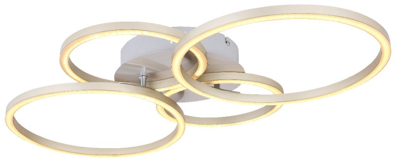 Nikel mat LED plafonska lampa (Ø prstenja: 2x30cm, 2×20,5cm) privlači svačiju pažnju svojim modernim, impozantnim dizajnom. Njegov zakrivljeni oblik stvara pravi detalj koji će privlačiti pažnju. Moderna plafonska lampa je snabdevena sa tri trajno postavljene LED sijalice. Zahvaljujući LED tehnologiji koja se koristi, lampa izuzetno štedi energiju i ističe se se sa niskom proizvodnjom toplote i dugim radnim vekom.