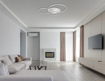 The INVERTINA ceiling lamp impresses with a futuristic, rectangular design consisting of four offset rings arranged next to each other. This extravagant design creates a modern eye-catcher in every room and blends harmoniously into different furnishing styles. The silver-coloured, brushed aluminium body gives the lamp an elegant and timeless look. The shade made of opal plastic and acrylic ensures an even distribution of light and creates a fascinating play of light and shadow thanks to the integrated 3D mirror effect. The INVERTINA is designed for the smart home and can be conveniently controlled by remote control. It is dimmable and offers colour temperature control (CCT) from a warm 2700 Kelvin to a cool 6500 Kelvin. The light colors can be fixed and the last settings can be saved thanks to the memory function. With an impressive light output of 4599 lumens and a night light mode, the INVERTINA offers a customized and energy-saving lighting solution for modern living spaces.