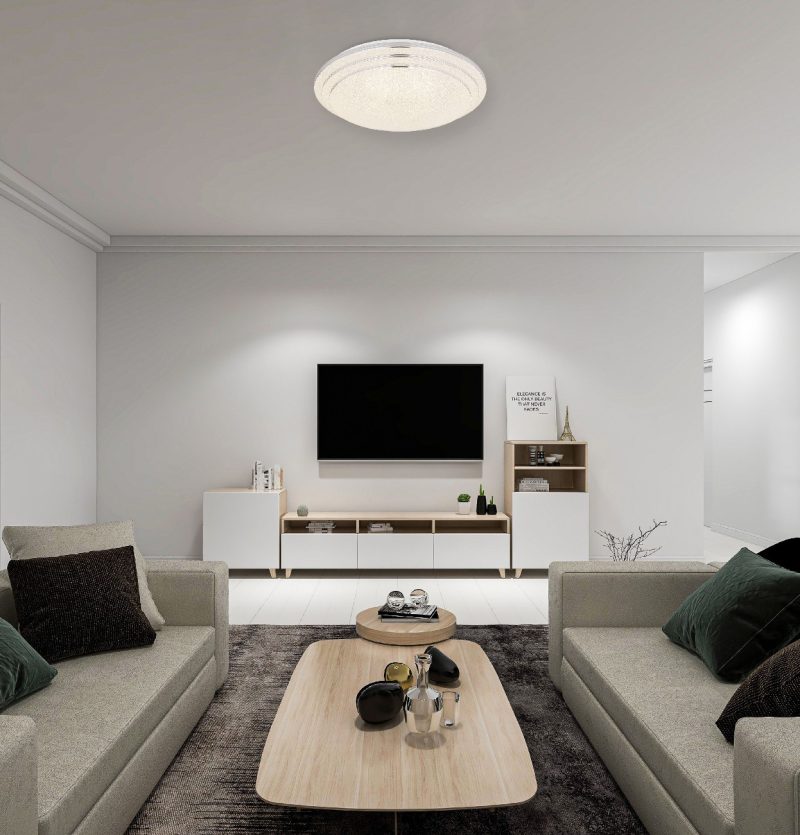 Prelepa okrugla plafonska lampa (Ø40cm) serije ALEY inspiriše prelepim dizajnom i funkcijom. LED sijalica se nalazi unutar plafonske lampe i može se zatamniti i fiksirati u bojama od 2700 Kelvina topla bela do 6500 Kelvin hladno bela. Pored toga, lampa ima funkciju memorije i može se upravljati pomoću uključenog daljinskog upravljača.