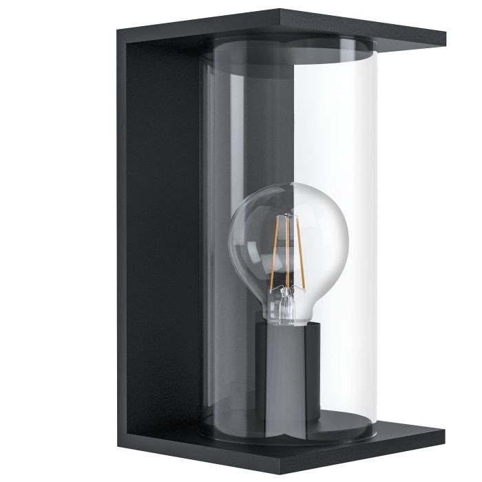 The CASCINETTA exterior wall light has a black zinc-plated metal body and a clear glass cylindrical shade with a visible lightbulb style. The product has IP54 protection meaning it is suitable for outdoor use and has protection against spray water and dust. The modern design will beautifully complement any outdoor space. The picture filament lightbulb is not included. The product has an E27 lamp holder and requires 1 E27 lightbulb.
