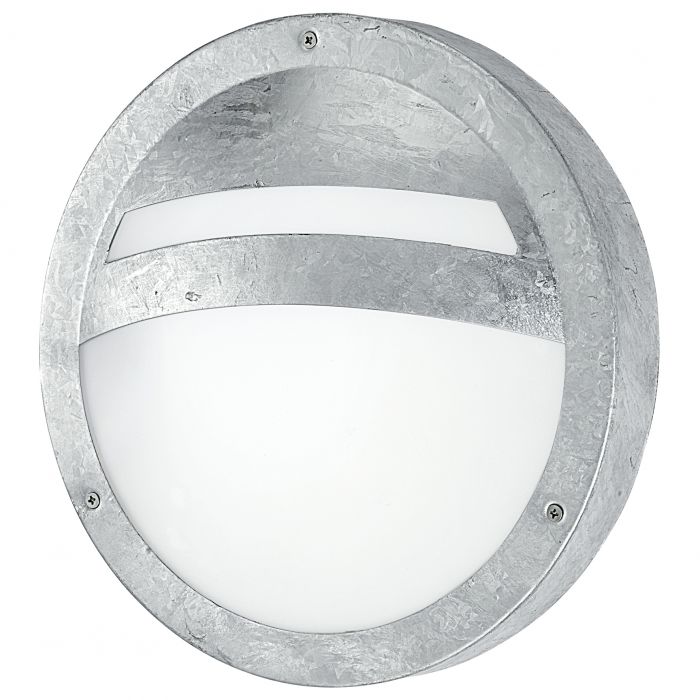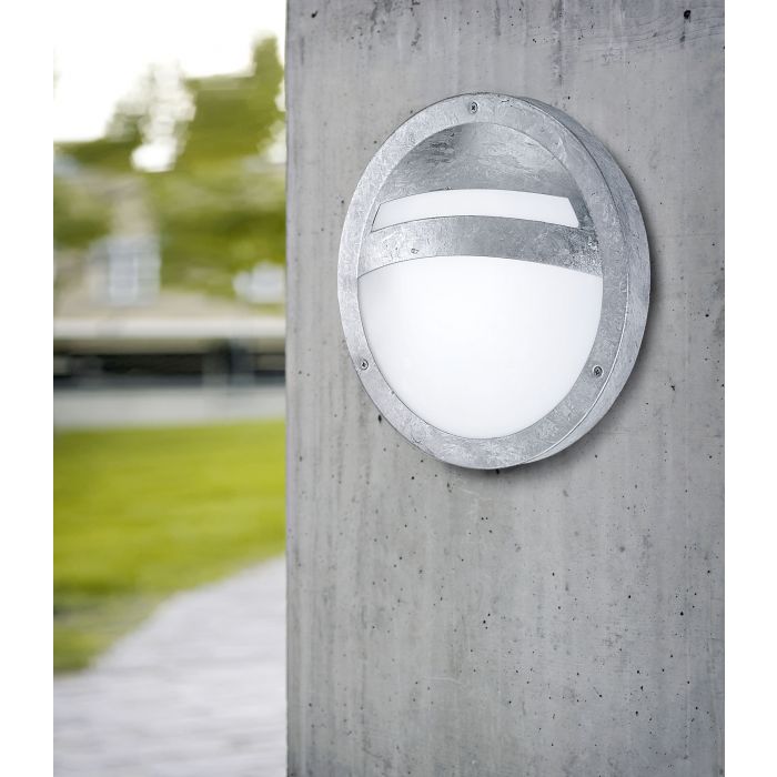 The SEVILLA exterior wall light features a galvanised round metal body with a white satin glass light panel. The product is suitable for outdoor use due to its IP44 protection against spray water. The wall light can also used as a ceiling light and has a nautical-inspired, classic style that compliments your outdoor space. The lightbulb is not included. The product has an E27 lamp holder and requires 1 E27 lightbulb.