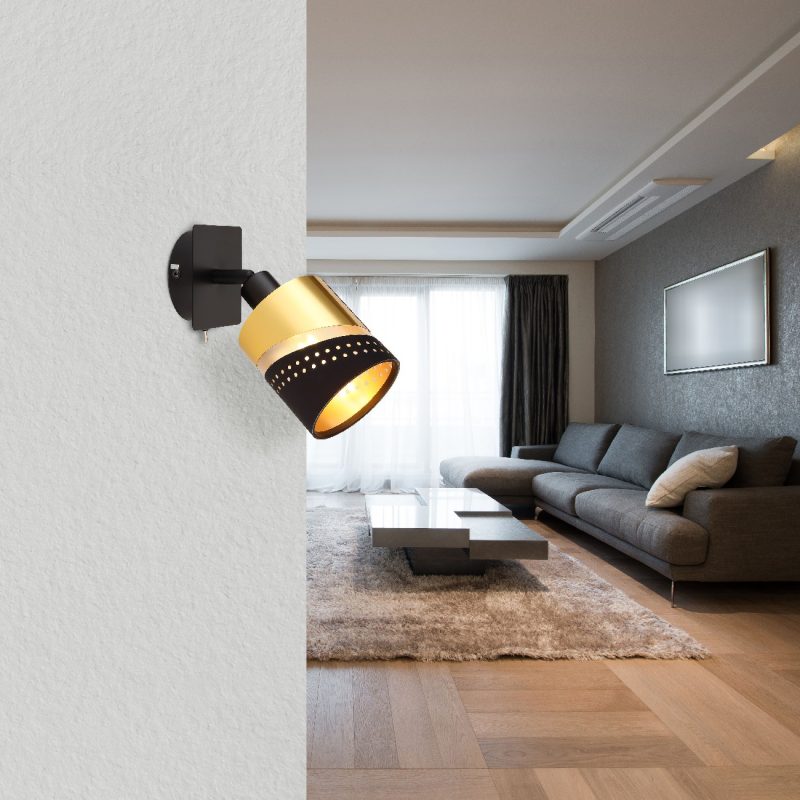Elegantan reflektor, serije OR, koja će doneti toplu atmosferu u vašem domu. Reflektor je napravljen od mat crnog metala i crnog teksitlnog abažura koji nežno filtrira svetlost. Plastika zlatne boje sa unutrašnje strane abažura pruža prijatno svetlo. Sa širinom od 90 mm, visinom od 175 mm i dužinom od 200 mm, ovaj reflektor će privlačiti poglede u svakoj prostoriji. Prekloni prekidač olakšava upotrebu. Lampa ne uključuje sijalicu 1xE14 od 60W.
