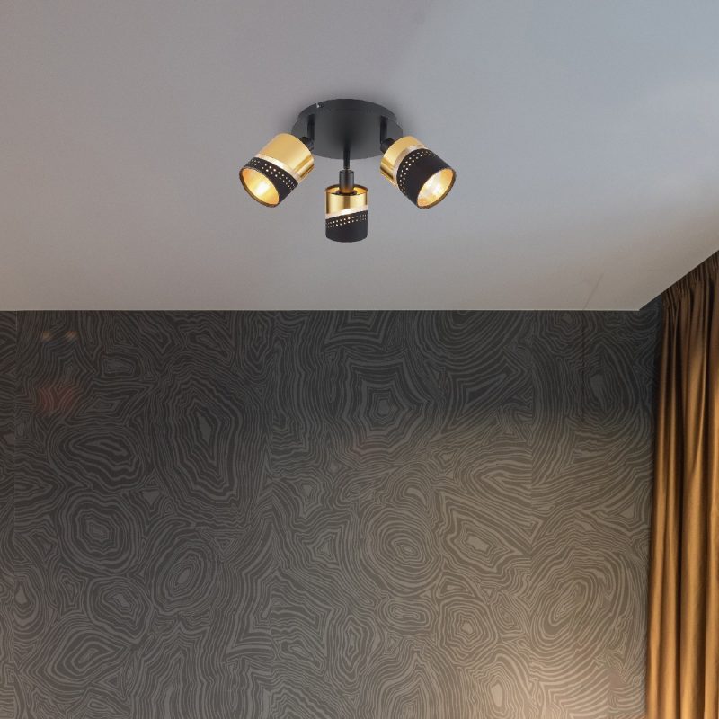 Elegantan reflektor, serije OR, koja će doneti toplu atmosferu u vašem domu. Reflektor je napravljen od mat crnog metala i crnog teksitlnog abažura koji nežno filtrira svetlost. Plastika zlatne boje sa unutrašnje strane abažura pruža prijatno svetlo. Sa prečnikom od 250 mm i visinom od 205 mm, ovaj reflektor će privlačiti poglede u svakoj prostoriji. Lampa ne uključuje sijalice 3xE14 od 60W.