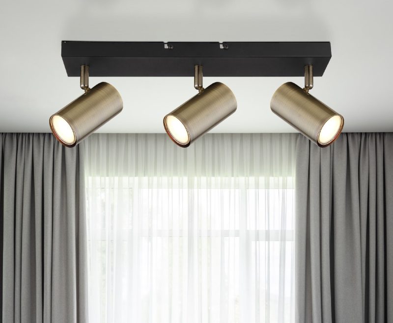 Ovaj jednostavan reflektor serije ROBBY inspiriše dizajnom i bojama. Na pravougaonoj plafonskoj osnovi (41x6cm) u mat crnoj boji postoje tri GU10 grla, od kojih je svako prekriveno cilindričnim abažurom u boji starog mesinga. Grlo GU10 vam omogućava slobodan izbor izvora svetlosti, do maksimalne snage od 75 vati.