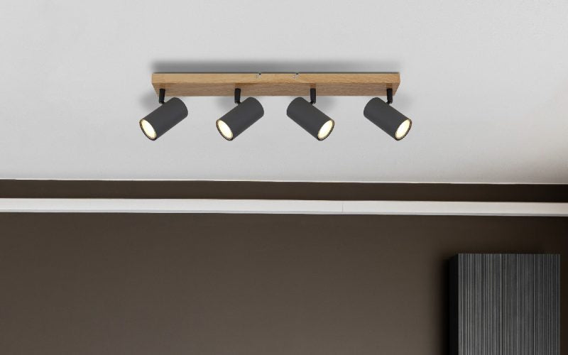 Ovaj jednostavan reflektor serije ROBBY inspiriše svojim dizajnom. Na pravougaonoj plafonskoj osnovi nalik drvetu (56x6cm) postoje četiri grla GU10, od kojih je svako pokriveno cilindričnim abažurom u boji mat grafita. Grlo GU10 vam omogućava slobodan izbor izvora svetlosti, do maksimalne snage od 75 vati.