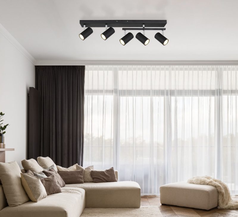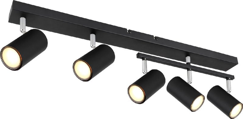 Ovaj prelepi reflektor inspiriše sjajnim dizajnom. Na 70cm dugačkoj crnoj mat grani su dva GU10 grla sa pokretnim zglobovima i još tri GU10 grla sa dodatnom crnom mat pokretnom šipkom. Grla GU10 vam omogućavaju da slobodno odaberete sijalice do maksimalnog izlaza od 75 vati.