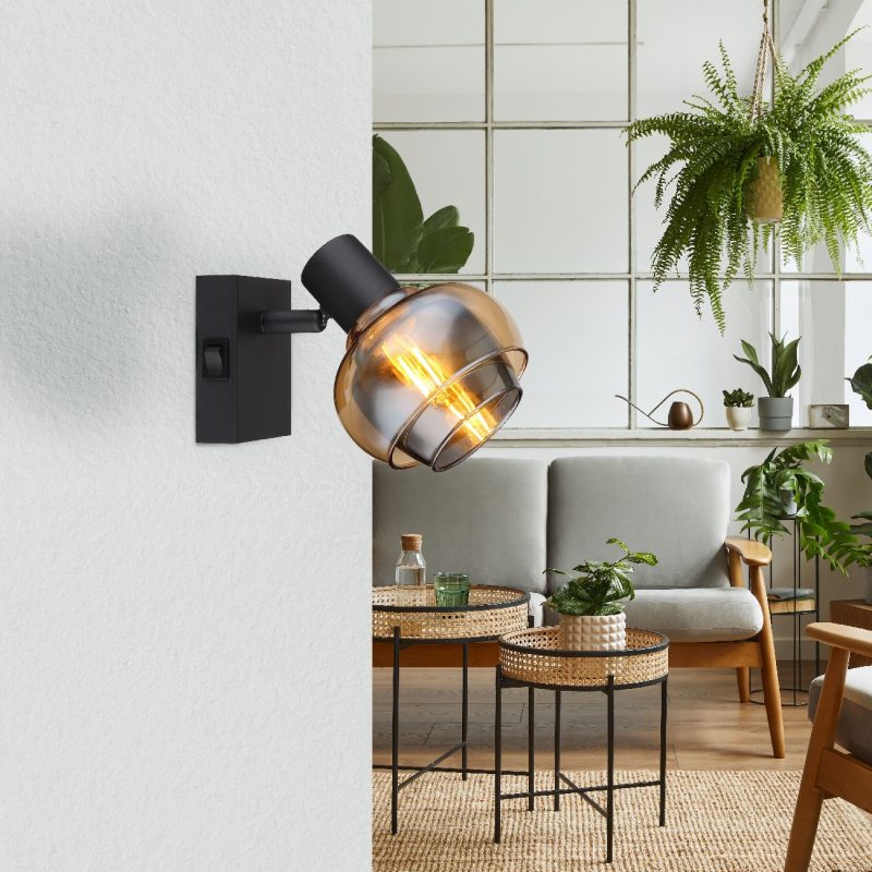 Otkrijte fascinantan reflektor sa E14 grlom i učinite da vaš dom zablista! Svojim stilskim dizajnom i jedinstvenom kombinacijom crnog mat metala, stakla u boji ćilibara i dima, ovaj reflektor će privlačiti poglede u bilo kojoj prostoriji. Zahvaljujući praktičnom prekidaču na lampi, imate potpunu kontrolu nad osvetljenjem. Sa dimenzijama od 105x125mm (WxH) i dužinom od 135mm (AL), reflektor se savršeno uklapa u različite sobne koncepte. Grlo E14 vam omogućava da odredite boju svetla i jačinu do maksimalne snage od 60 vati.