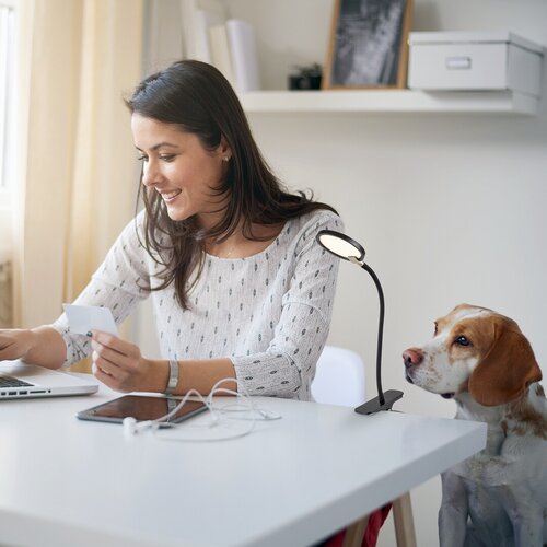 Moderna Marcin pametna lampa na klip je odličan izbor za uštedu prostora u dnevnoj sobi, spavaćoj ili radnoj sobi. Potpuno plastični model upotpunjen je fleksibilnom rukom i glavom lampe u obliku diska sa belim abažurom. Zahvaljujući rešenju za pričvršćivanje ova lampa je izuzetno mobilna: ne samo da je možete pričvrstiti na stolove, već i na police i može se premestiti u bilo koje vreme. Marcin ima ugrađen LED izvor svetlosti energetske klase G sa snagom od 7 V, svetlosnim fluksom od 350 lumena sa senkom i 580 lumena bez senke, i životnim vekom od 25.000 sati. Stona lampa ima prekidač na dodir i zrači toplo belo svetlo. Temperatura boje je 3000 K, ugao snopa je 108°. Marcin se može zatamniti pomoću prekidača na dodir, odnosno njegova osvetljenost se može podesiti: možete ga podesiti na 10, 40 ili 100%. Dimenzije klip-on svetla su sledeće: širina 270 mm, visina 360 mm, prečnik abažura 110 mm, dužina kabla 1.500 mm.